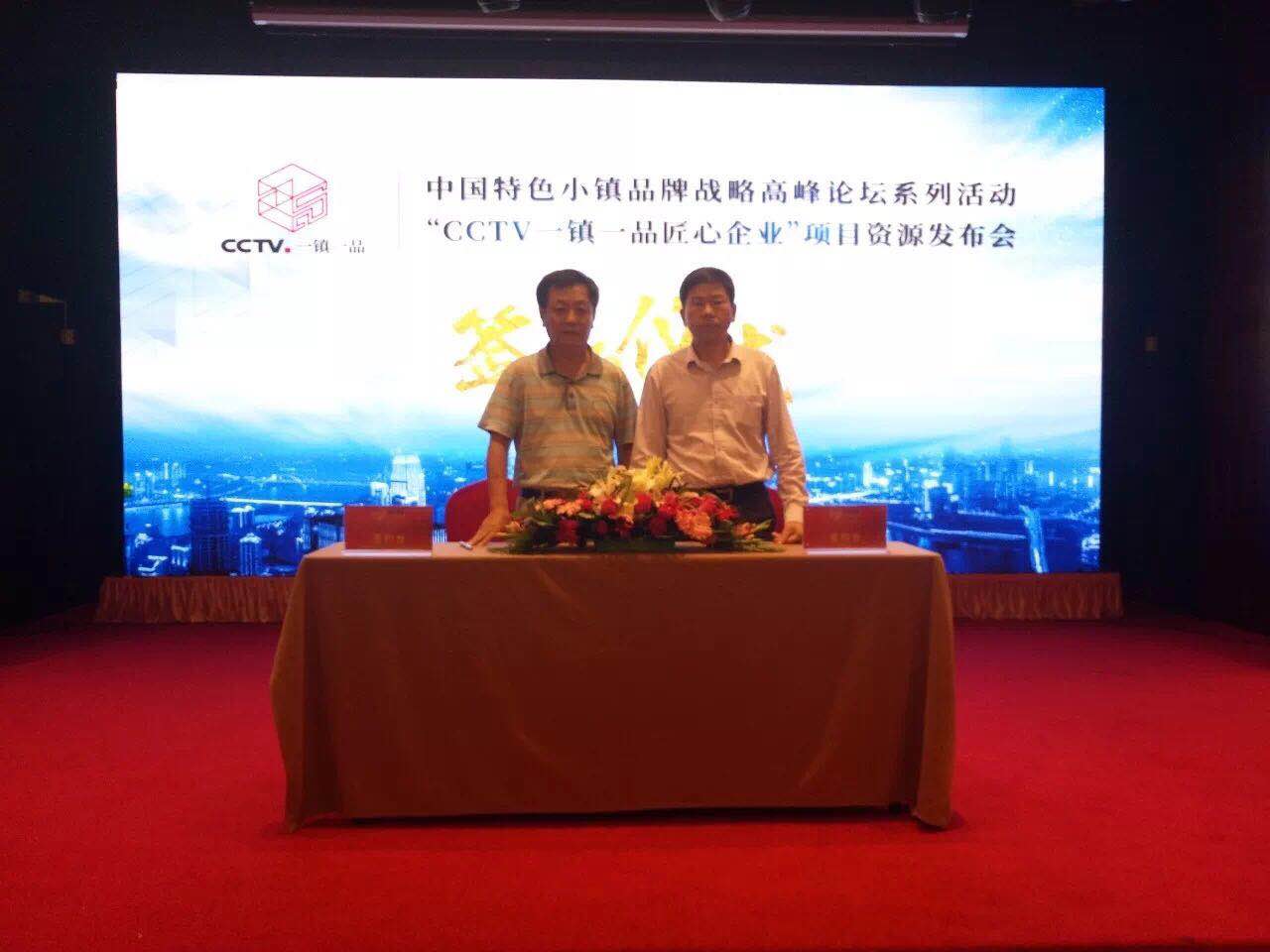 肖志軍先生與“CCTV一(yī)鎮一(yī)品”’項目運營中心品牌總監王森先生簽署《“CCTV一(yī)鎮一(yī)品”廣告協議(yì)》。